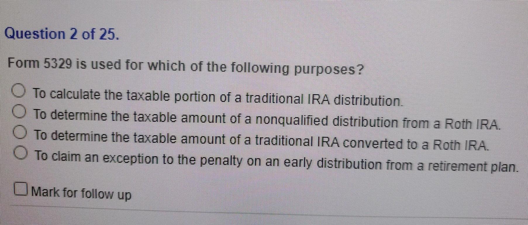 Solved Question 2 Of 25 Form 5329 Is Used For Which Of The Chegg Com